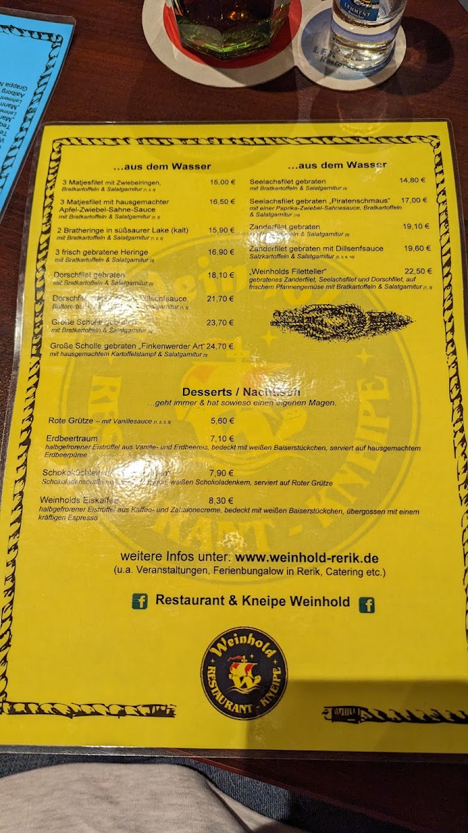 In essence, Restaurant & Kneipe Weinhold offers a delightful culinary experience that beautifully captures the spirit of Rerik.